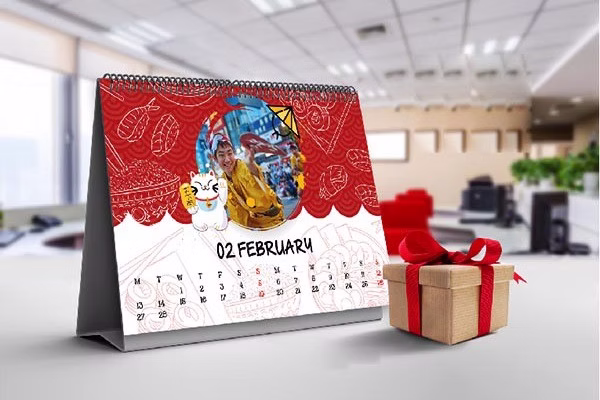 Lịch bàn: Kích thước sẽ là 16×22 cm, 13 trang.